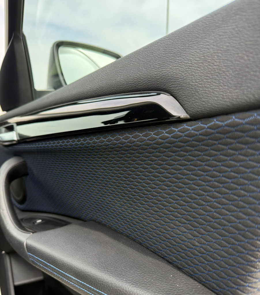 •Športové sedadlá kombinácia Alcantara (brúsená koža) + Látka s modrým prešívaním