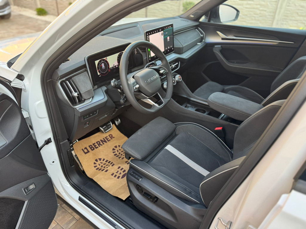 Predám Kodiaq 2 vo výbave Sportline s veľmi peknou príplatkovou výbavou a nádhernou Bielou Moon metalízou na R19 Origo Sportline Tirsuli kolesách na Hankook pneu.