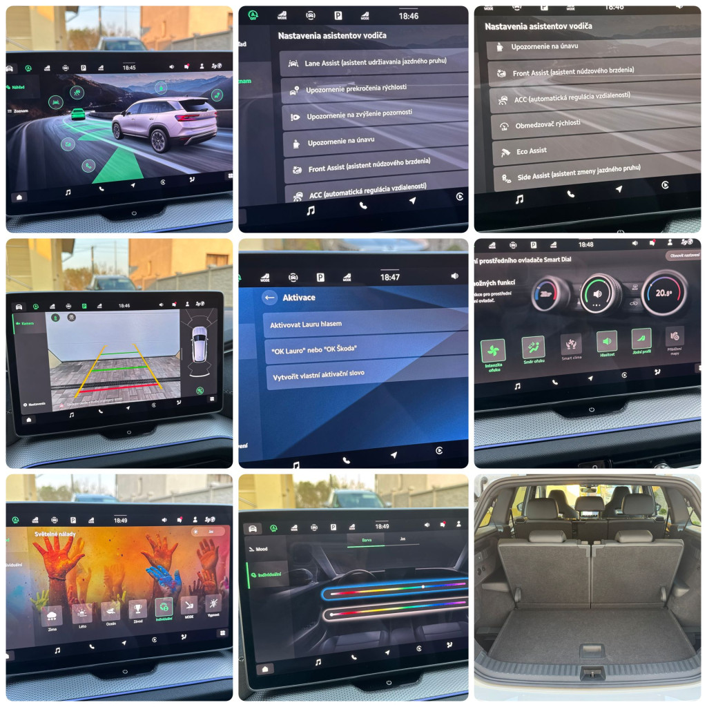 - Všetky asistenti Lane, ACC Tempomat, mŕtvy uhol, front, čítanie značiek, rozpoznanie únavy