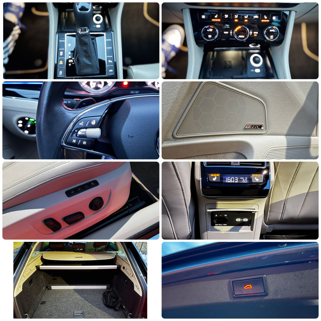 Škoda crystal lighting FULL LED svetlá MATRIX s vyrezávaním a dynamickými smerovkamim panoráma sklenené strešné okno, keyless bezkľúčové otváranie dverí aj na zadných dverách a štartovanie, cúvacia kamera, senzory okolo celého auta, prémiový audiosystém Canton, DCC podvozok módy ( ECO COMFORT SPORT), LK 2 ramenný vyhrievaný volant s F1 radením, navigácia, biele kožené sedačky vyhrievané vpredu aj vzadu! predné sedačky elektrické pamäťové, asistenti, tempomat, front, side, dopravné značky, rozpoznanie únavy, ambientné osvetlenie na zem svieti škoda, 2-zónová klimatizácia, coming a Leaving home, apple car play, android auto, akustické okná predných dverí dvojsklo, isofix úchyty pre detskú sedačku na zadnom sedadle, elektricky kufor, dvojité dno v kufri rozdeľovacia sieťka,