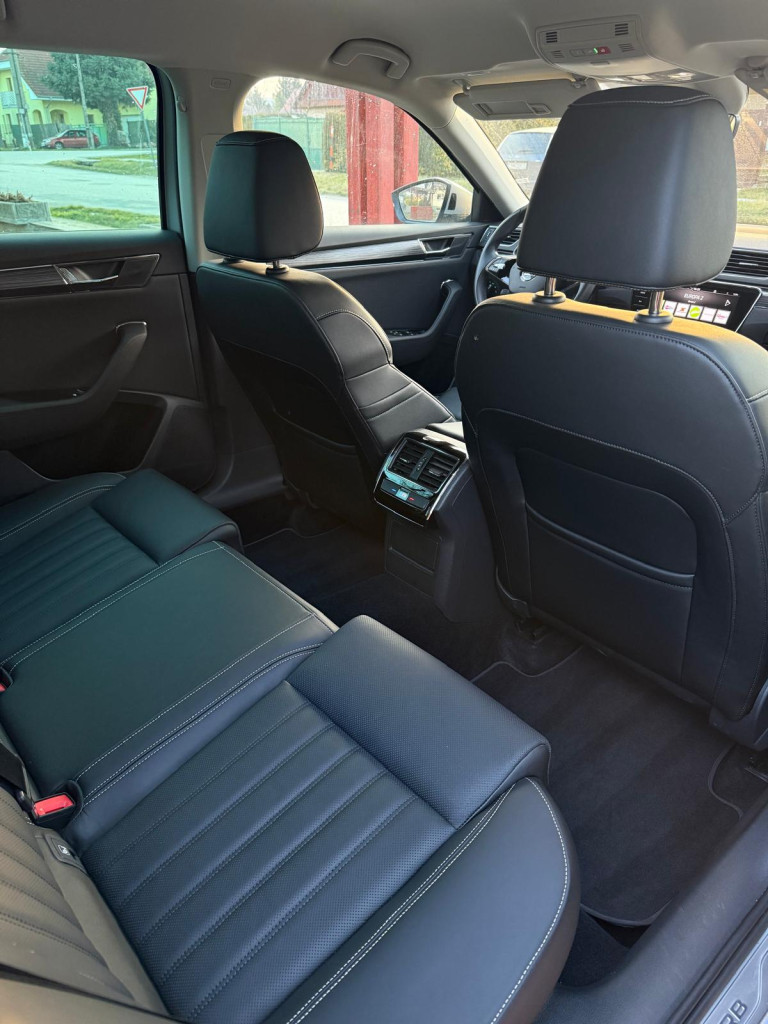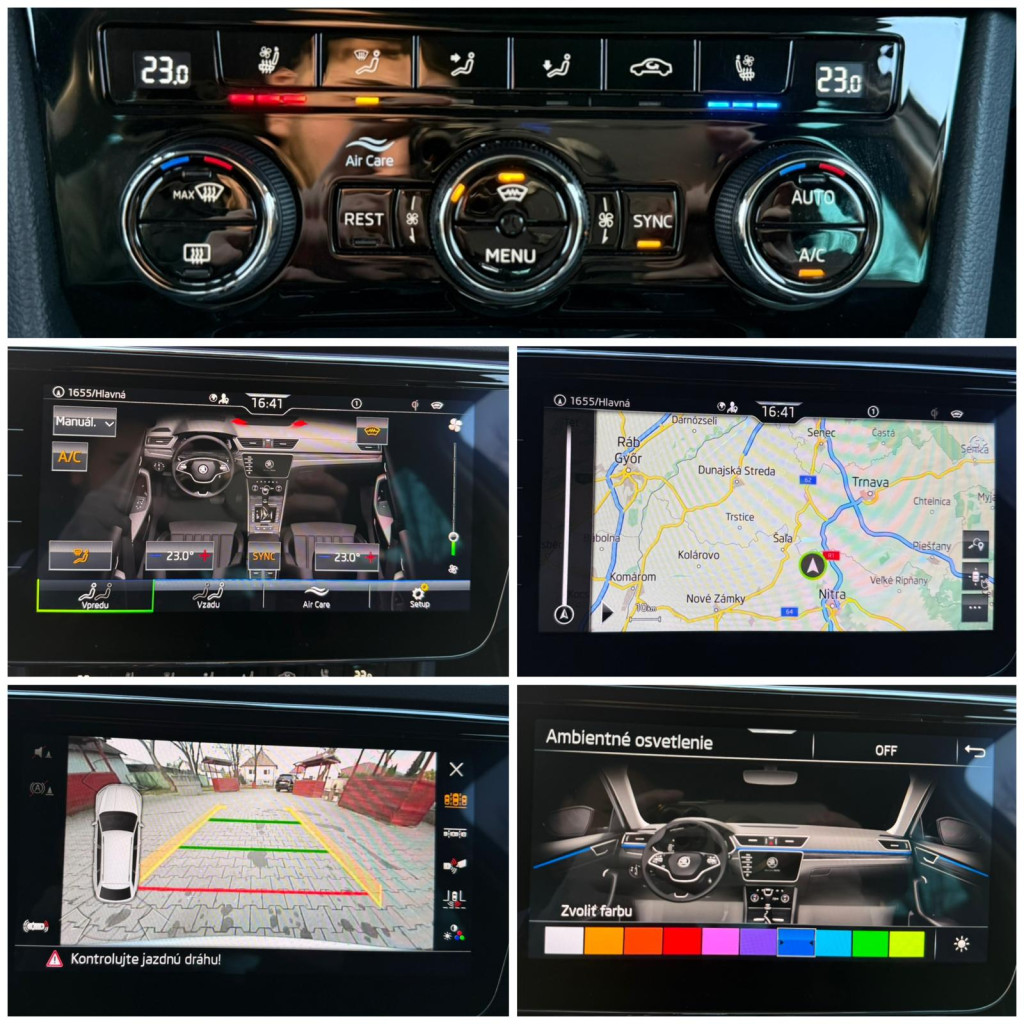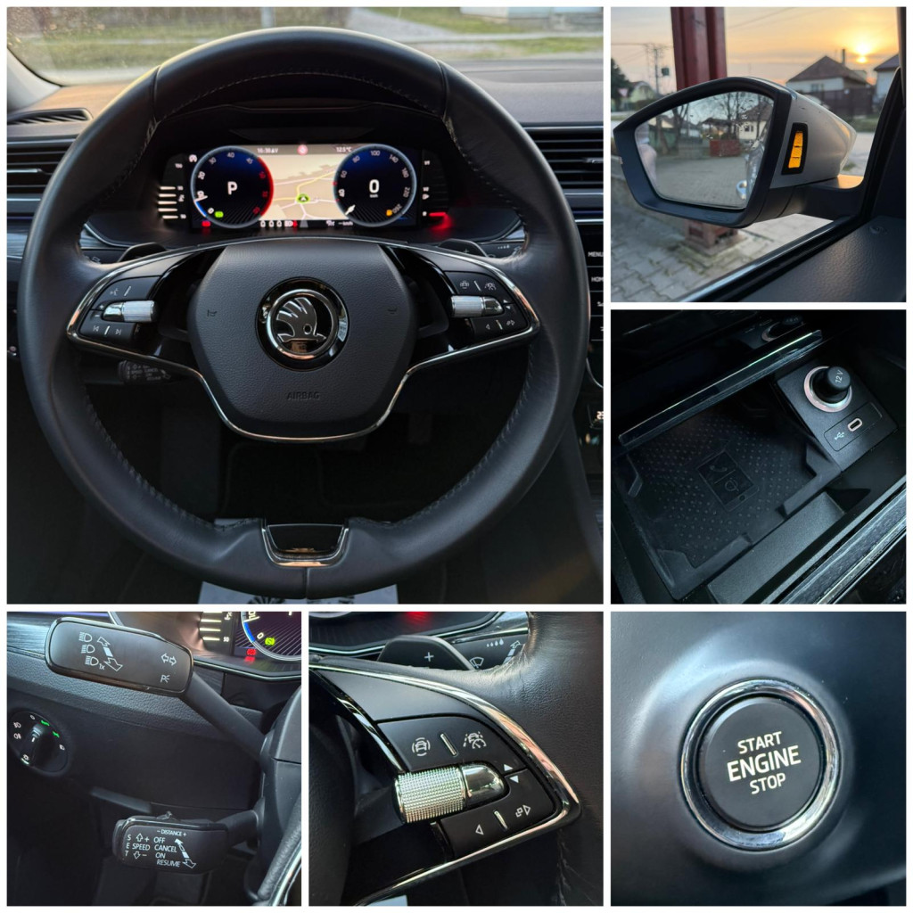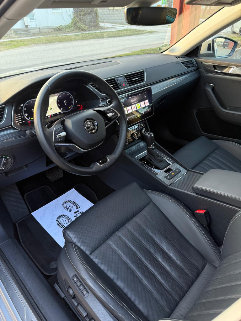Klimatizovaná priehradka, Trojzónová automatická klimatizácia, Android Auto, Apple Car Play, Kožená lakťová opierka, Automaticky stmievacie vnútorne spätné zrkladlo, Bluetooth handsfree, Elektricky sklápateľné spätné zrkadlá pri zamknutí, Elektrické pamäťové predné sedačky, Masážne sedadlo vodiča, Elektrický kufor, Elektrické okná 4x, 2x kľúč , Krásny prešívaný Čierny interiér, Sedadlá z Kože, Vyhrievané zrkadlá, Odetrávané predné sedačky, Vyhrievané predné sedačky, Vyhrievané Čelné sklo, Ambientné LED osvetlenie interiéru, Multifunkčný kožený volant, Akustické predné sklá, KESSY- Bezkľúčové odomykanie/ zamykanie a Bezkľúčový štart, Navigačný systém, 360° Parkovacie senzory+ Cúvacia kamera+ SAMOPARKOVANIE, Dotykové rádio, Tónované sklá, Leaving a coming home, Originál ŠKODA hliníkové disky R17+ plnohodnotná rezerva, AUTOHOLD (elektrická parkovacia brzda), Svetelný senzor, Dažďový senzor, Strešný nosič, Stop&start systém, SmartLink, Bezdrôtové nabíjanie telefónu, DYNAMIC LIGHT ASSIST, SIGN ASSIST-identifikácia dopravných značiek, ACC- automatická regulácia rýchlosti so zohľadňovaním cesty a prispôsobovaním rýchlosti na základe GPS, FRONT ASSIST- systém sledovania okolia a protikolízny systém s automatickým brzdením, LANE ASSIST- systém udržiavania v jazdných pruhoch, Adaptívne vedenie v stope, SIDE ASSIST- senzor mŕtveho uhla, Monitorovanie pri cúvaní, Rozpoznávanie únavy,