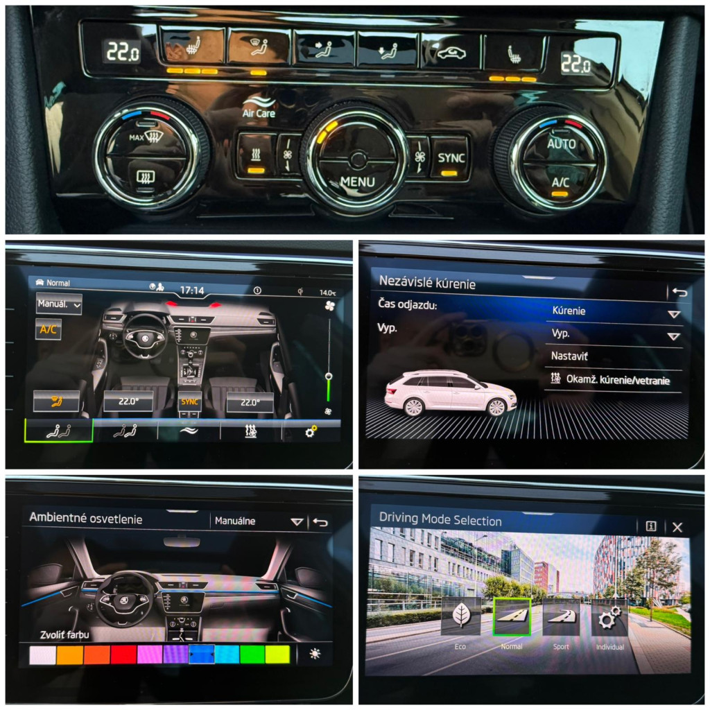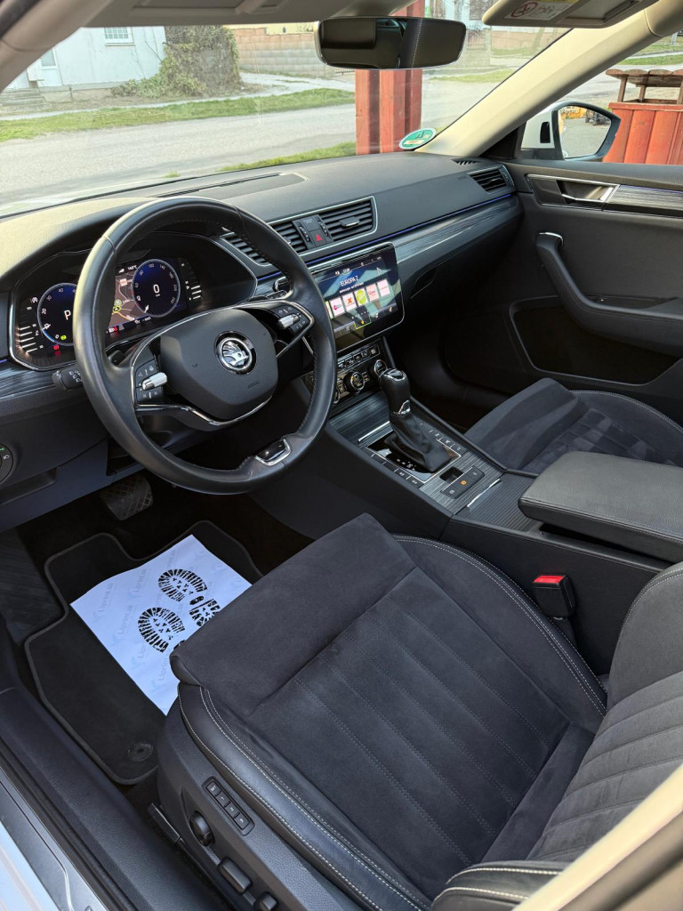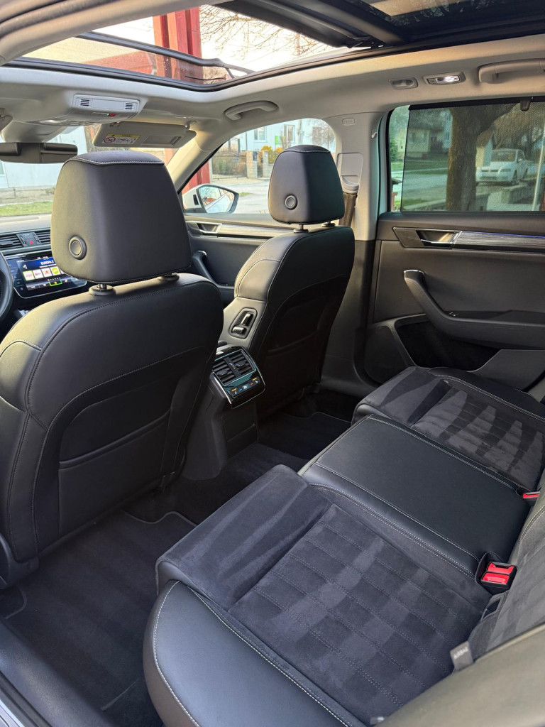 Klimatizovaná priehradka, Trojzónová automatická klimatizácia, Android Auto, Apple Car Play, Kožená lakťová opierka, Automaticky stmievacie vnútorne spätné zrkladlo, Bluetooth handsfree, Elektricky sklápateľné spätné zrkadlá pri zamknutí, Elektrické pamäťové predné sedačky, Zadné roletky, Elektrický kufor, Elektrické okná 4x, 2x kľúč + 1x Webasto , Krásny prešívaný Čierny interiér, Sedadlá z Kože/ ALCANTARA❗️, Vyhrievané zrkadlá, 4x Vyhrievané predné/ zadné sedačky, Vyhrievaný volant, Ambientné LED osvetlenie interiéru, Multifunkčný kožený volant, Akustické predné sklá, KESSY- Bezkľúčové odomykanie/ zamykanie a Bezkľúčový štart, Navigačný systém, 360° Parkovacie senzory+ 360°3D kamery ❗️ + SAMOPARKOVANIE, Dotykové rádio, Tónované sklá, Leaving a coming home, Originál ŠKODA hliníkové disky R19, AUTOHOLD (elektrická parkovacia brzda), Svetelný senzor, Dažďový senzor, Strešný nosič, Stop&start systém, SmartLink, Bezdrôtové nabíjanie telefónu, DYNAMIC LIGHT ASSIST, SIGN ASSIST-identifikácia dopravných značiek, ACC- automatická regulácia rýchlosti so zohľadňovaním cesty a prispôsobovaním rýchlosti na základe GPS, FRONT ASSIST- systém sledovania okolia a protikolízny systém s automatickým brzdením, LANE ASSIST- systém udržiavania v jazdných pruhoch, Adaptívne vedenie v stope, SIDE ASSIST- senzor mŕtveho uhla, Monitorovanie pri cúvaní, Rozpoznávanie únavy, Identifikácia prívesu, Proaktívna ochrana cestujúcich