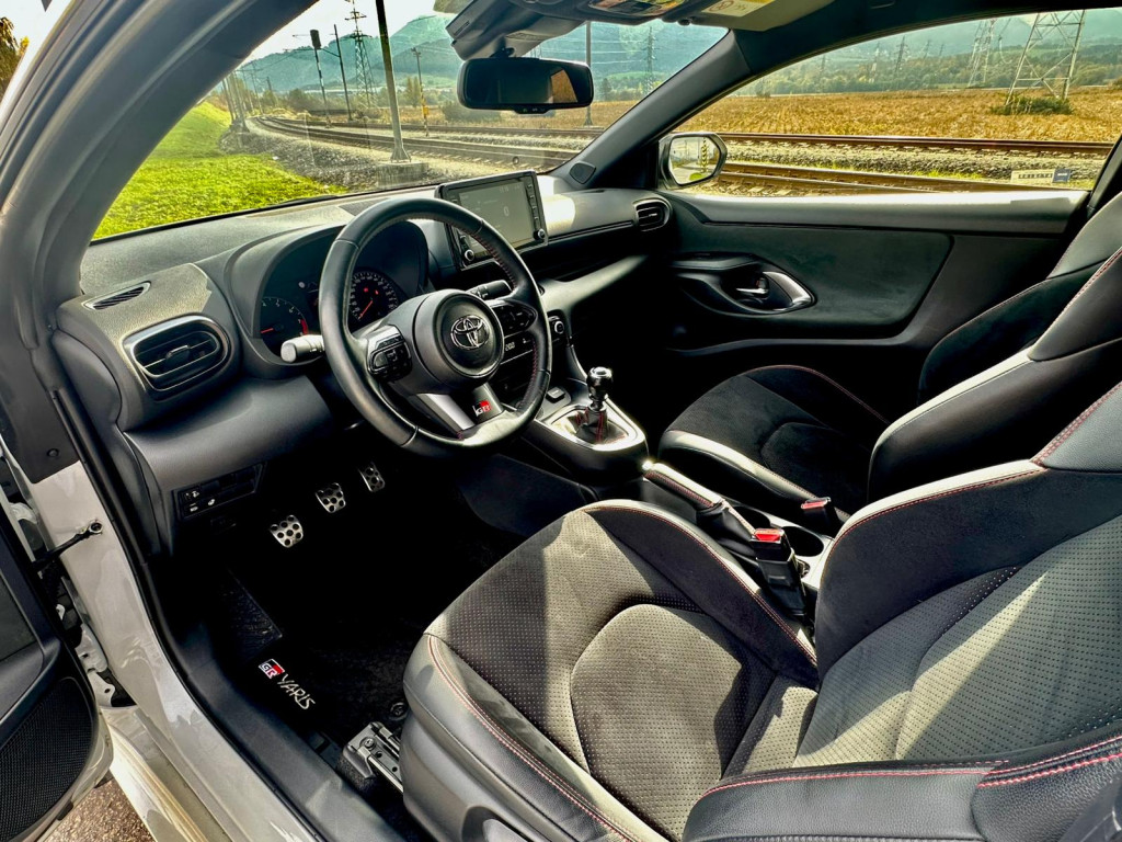 GR výbava – športové sedadlá s čalúnením Alcantara, kožený multifunkčný volant v dizajne GR, LED svetlomety, hliníkové pedále a disky.