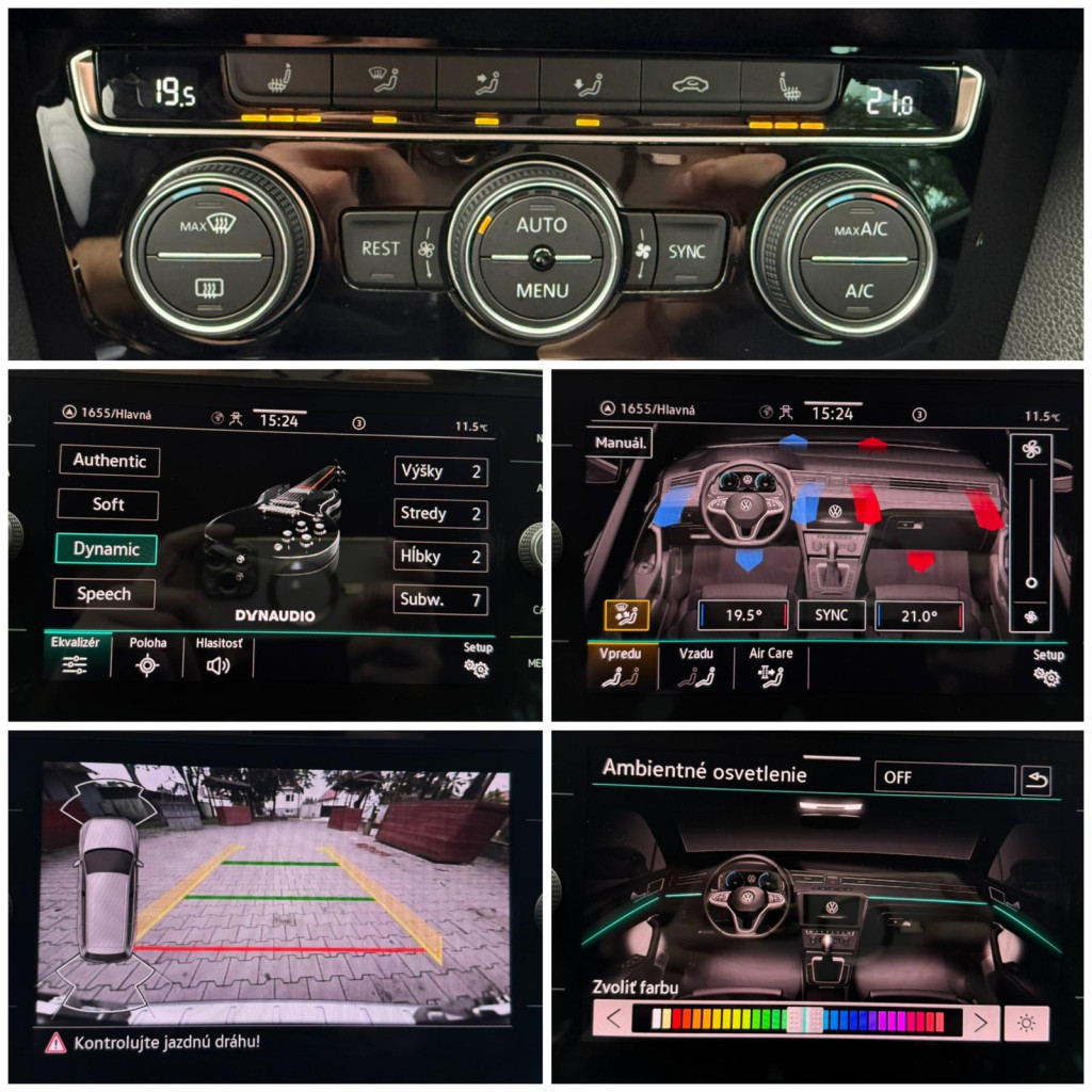 Klimatizovaná priehradka, Trojzónová dotyková automatická klimatizácia, Apple Car Play, Android Auto, Kožená lakťová opierka, Elektrické sedadlo vodiča, Masážna sedačka vodiča, Elektricky sklápateľné spätné zrkadlá pri zamknutí, Elektrické okná 4x, Krásny Čierny interiér, Čierny strop!, Sedadlá z Kože/Alcantara, Vyhrievané zrkadlá, Vyhrievané sedadlá predné aj zadné 4x, Multifunkčný kožený volant, AMBIENTNÉ LED osvetlenie interiéru so všetkými farbami(30), Bezkľúčový štart, Parkovacie senzory + Cúvacia kamera , Leaving a Coming home, Originál VW hliníkové disky R18, Asistent rozjazdu do kopca, SIGN ASSIST- identifikácia dopravných značiek, ACC- automatická regulácia rýchlosti so zohľadňovaním cesty a prispôsobovaním rýchlosti, FRONT ASSIST- systém sledovania okolia a protikolízny systém s automatickým brzdením, LANE ASSIST-systém udržiavania v jazdných pruhoch, Adaptívne vedenie v stope, SIDE ASSIST- senzor mŕtveho uhla, Rozpoznávanie únavy, Identifikácia prívesu, Monitorovanie pri cúvaní, Proaktívna ochrana cestujúcich